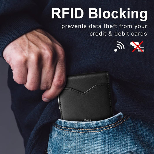 Men's Slim Leather RFID Blocking Wallet - Minimalist Carbon Fiber Bifold ( BUY 1 GET 1 FREE )